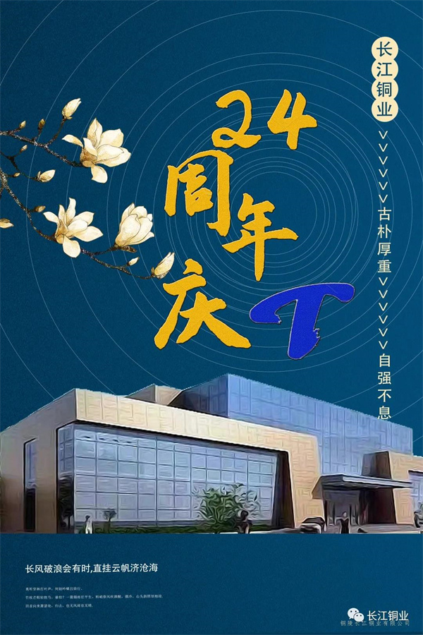 24載春秋,韶華匆匆;24載耕耘,碩果累累。二十四年來,銅陵長江銅業(yè)有限公司秉承著古樸厚重、自強(qiáng)不息”的創(chuàng)業(yè)理念,堅(jiān)守著“發(fā)展創(chuàng)新、誠信經(jīng)營”的經(jīng)商初心,帶領(lǐng)著長銅人不斷銳進(jìn),創(chuàng)造出獨(dú)屬于長銅的時(shí)代輝煌。